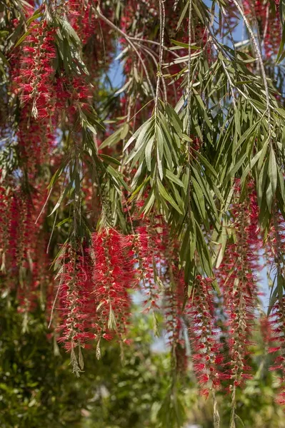 Bottle Brush Tree In Flower Callistemon Sp Good For Bees In Garden Spain Stock Photo Alamy